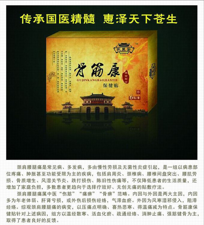 膏藥加工膏藥貼牌加工骨筋康 發(fā)布時(shí)間:2016-11-24來(lái)源:點(diǎn)擊:5222 Tags:膏藥加工,黑膏藥加工,膏藥貼牌加工,膏藥oem貼牌加工 上一篇:膏藥加工跌打損傷保健貼 下一篇:沒(méi)有了