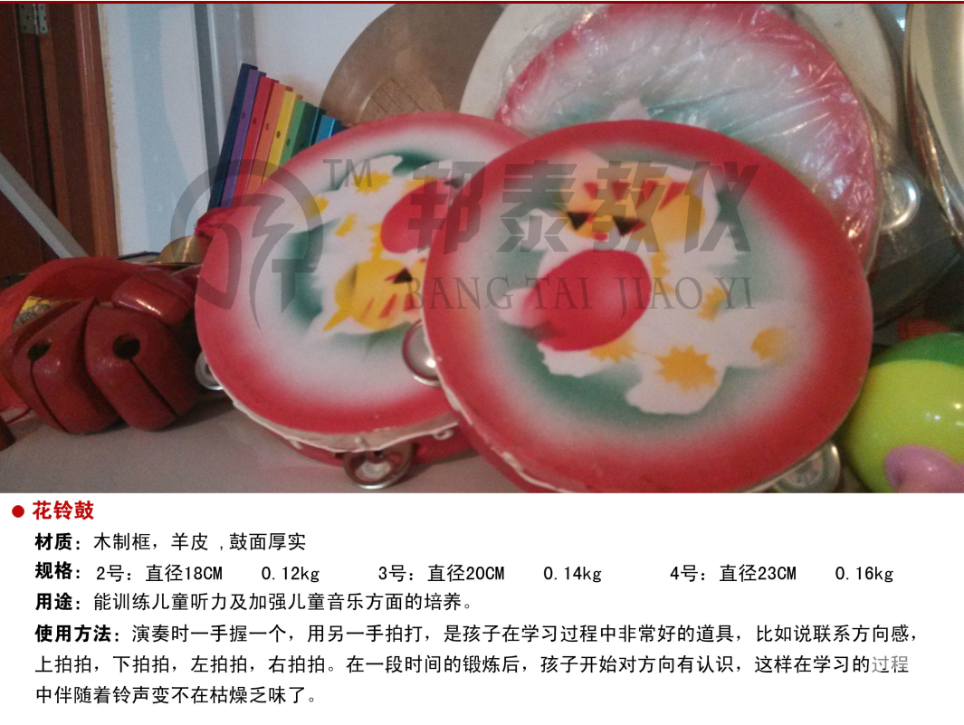 【功能】:訓練兒童聽力,加強兒童音樂方面及動作協(xié)調力的培養(yǎng)、三角鐵是屬于高頻的樂器。